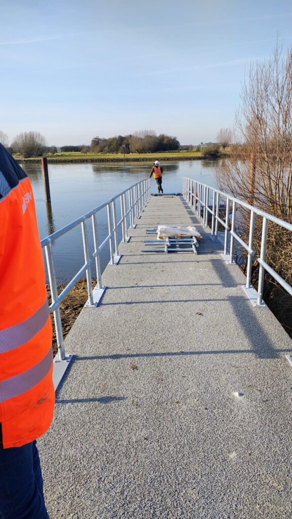 De oude houten steiger is vervangen door een moderne metalen systeembrug. Deze vernieuwing zorgt ervoor dat voetgangers en fietsers weer veilig gebruik kunnen maken van de oversteek tussen Gorssel en Wilp.